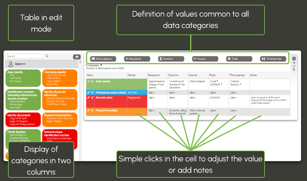 Adjustments by data category are simplified: a single click directly in the cell is sufficient.